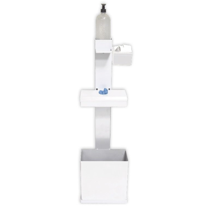 Estación de higiene DM-8900 metálica color blanca. Estación de higiene para edificios. Asegure que las personas que acceden a sus instalaciones dispongan de los medios de protección. Coloque los productos higiénicos recomendados en un expositor adecuado. En recepción, a la entrada del departamento, o en zonas comunes, es recomendable colocar un expositor modular. DM-8900 Soporte modular de pie. Dimensiones: altura 100cm x ancho 30cm x fondo 30cm. Sólida estructura metálica. Todos los componentes son metálicos. Color blanco. Producto bien terminado, con buena presencia. Dispone de una bandeja de la parte superior para colocar un dosificador de gel hidroalcohólico o desinfectante, con accesorio artihurto regulable en altura. No incluye el bote de gel. Puede incorporar estos accesorios opcionales: DM-8911: Papelera metálica color blanca. DM-8940: Bandeja metálica donde puede colocar guantes o pañuelos. DM-8910: Dispensador con tapa de guantes o pañuelos tissues metálico color blanco. DM-8912: Dispensador con tapa de mascarillas metálico color blanco. El producto de la imagen tiene esta configuración: DM-8900: Estación de higiene DM-8900 metal color blanco con portadosificador de gel hidroalcohólico. DM-8911: Papelera metálica color blanca. DM-8910: Dispensador con tapa de guantes o pañuelos tissues metálico color blanco. DM-8912: Dispensador con tapa de mascarillas metálico color blanco. Bote de gel no incluído. Puede completar el kit con estos consumibles: HAHP062: BACTEROMIL gel alcohólico desinfectante 500ml con dosificador. SH-012113: SHOPGEL gel hidroalcohólico desinfectante garrafa 5 litros. NM-NITRIL: (100) Guantes de nitrilo desechables azul NM-LATEX: (100) Guantes de látex desechables blancos 012099: Mascarilla quirúrgica desechable de 3 capas. 012156: Mascarilla desechable KN95 / FFP2 sin válvula 1402820: (100) Pañuelos faciales extrasuaves TORK Premium tissues 005775: Rollo de 25 bolsas de basura blancas 52x60