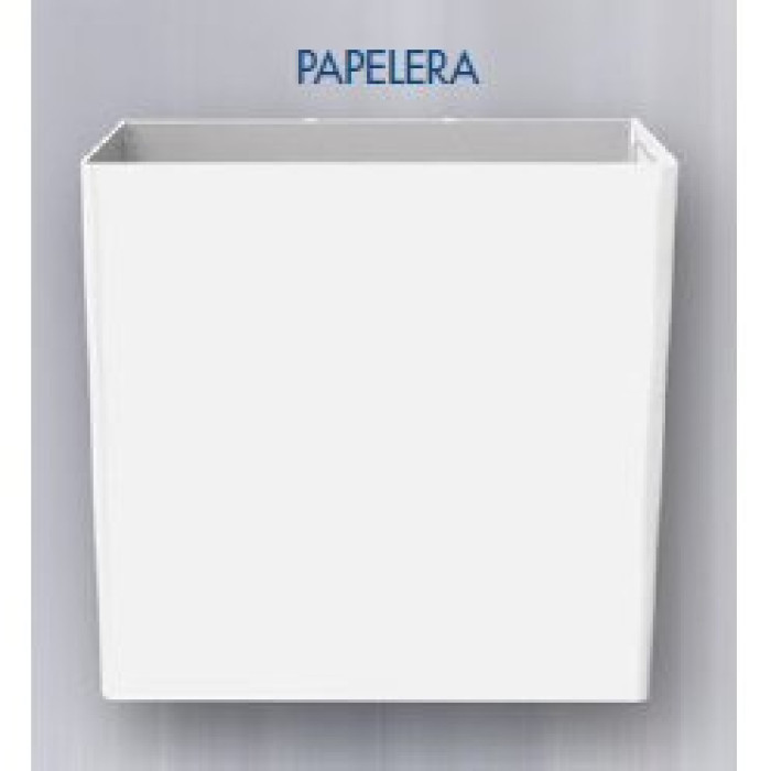 Papelera metálica sin tapa para depositar los consumibles higiénicos usados como guantes, mascarillas o pañuelos tipo tissues. Para acoplar en la Estación de higiene DM-8900 metálica color blanca. Dimensiones: alto 29 x ancho 29 x fondo 15cm Material metálico color blanco. Puede completar con: 005775: Rollo de 25 bolsas de basura blancas 52x60