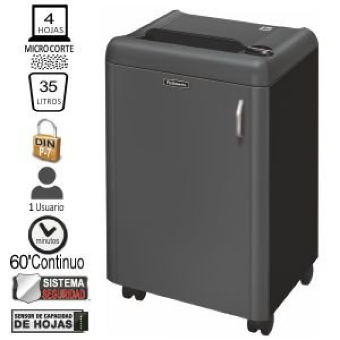 • Destructora de uso departamental, con nivel superior de seguridad en la destrucción, para documentos que han de ser mantenidos bajo absoluta confidencialidad. Destruye una hoja de papel A4, en aproximadamente 6.000 trozos • Destruye hasta 10 hojas en partículas de 0,8 x 12 mm (Nivel de seguridad P-6) • Sistema de seguridad en la boca de entrada con tapa con control eléctronico que impide un contacto fortuito con las cuchillas • Indicador con control de capacidad de hojas que evita los atascos antes de que se produzcan • Apagado automático, después de un tiempo de inactividad • Papelera de 100 litros, con capacidad de destrucción diaria para 2000 hojas • 2 años de garantía en la máquina y 2 años de garantía en cuchillas de corte