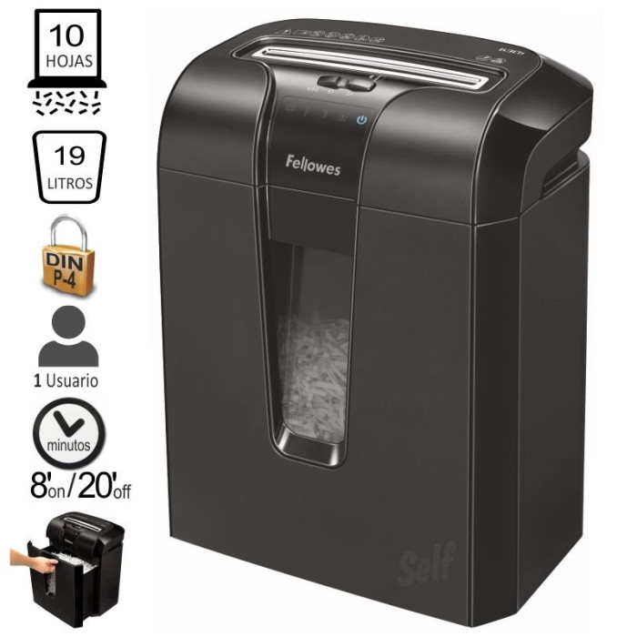 • Uso frecuente. Pequeña empresa. 1-3 usuarios • Destruye hasta 10 hojas en partículas de 4x51 mm. Nivel de seguridad moderado P-3 • Bloqueo anti-atasco, evita eficientemente los atascos antes de que se produzcan • Ahorro de energía, reduce el consumo de energía • Tecnología SafeSense de desconexión automática cuando la mano está demasiado cerca • Ciclo de trabajo de 8 minutos • Papelera de 19 litros, con capacidad de destrucción diaria para 320 hojas • 2 años de garantía en la máquina y 5 años de garantía en cuchillas de corte Destructora de uso frecuente con Bloqueo anti-atasco y Sistema de seguridad SafeSense