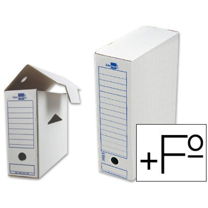 Caja archivo definitivo liderpapel 105 folio prolongado. Caja de cartón ondulado blanco de 325 g/m². De muy fácil montaje.