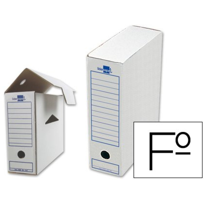 Caja archivo definitivo liderpapel 104 folio. Caja de cartón ondulado blanco de 325 g/m². De muy fácil montaje.