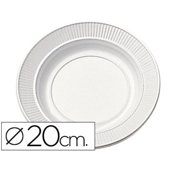 Plato de plastico blanco llano 20cm de diametro paquete de 50. Producto fabricado con material atóxico, no contaminante y reciclable. Color blanco. Llano.