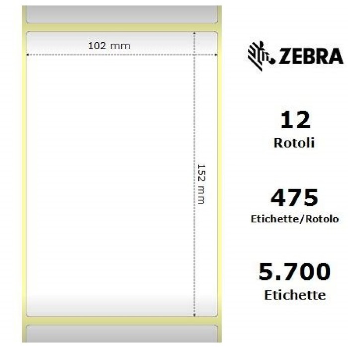 Caja de 12 rollos de etiquetas Z-Perform 1000D Etiquetas económicas para impresión térmica directa, superficie sin recubrimiento, adhesivo permanente. Para impresoras ZEBRA Desktop Printers: (DT) Diámetro interno (core) del rollo: 25mm Diámetro externo máximo del rollo: 127mm Importante revisar el diámetro interno del rollo que soporta su impresora. ZD510, HC100 GK420t/d, GX420t/d, GC420t/d, GX430t, GT800 ZD410, ZD420, ZD500, ZD620t/d LP2824, LP2844, LP3844 TLP2824, TLP2844, TLP3844 Material: papel sin recubrimiento. Tecnología: para impresión térmica directa. Propiedades: uso interno inferior a 1 año, condiciones ambientales normales. Tipo de adhesivo: permanente. Uso recomendado: transporte y logística, etiquetas de envío, identificación temporal de productos. Tamaño de etiqueta: ancho 102mm x alto 152mm Etiquetas por rollo: 475. Etiquetas por caja: 12 x 475 = 5.700. Rollos por caja: 12. El precio indicado es de la caja de 12 rollos.