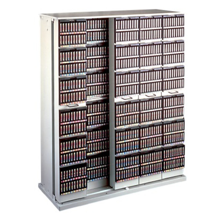 Estantería EDP Maximiser Rack Permite almacenar de una manera organizada los cartuchos de datos. Estantería construida en acero resistente y duradero. Se envía montada listo para usar. Las 2 filas inferiores están anguladas para que el operario tenga mejor visión de los cartuchos. Compatible con los contenedores de plástico Auto-Pac de cartuchos LTO/DLT. Se retiran y colocan fácilmente en la estantería. Incorporan unas tiras de retención que mantienen los cartuchos en su posición para mayor seguridad. Modelo single-sided (de una cara) para colocar contra una pared. Capacidad 2W x 6H Ancho de 2 Auto-Pacs (2W): 622mm Altura de 6 Auto-Pacs (6H): 1.867mm. Fondo de modelo single-sided: 305mm. Capacidad en Auto-Pacs: 2 x 6 Auto-Pacs = 12 Auto-Pacs Capacidad en cintas LTO/DLT: 12 Auto-Pacs x 16 cartuchos = 192 cartuchos.