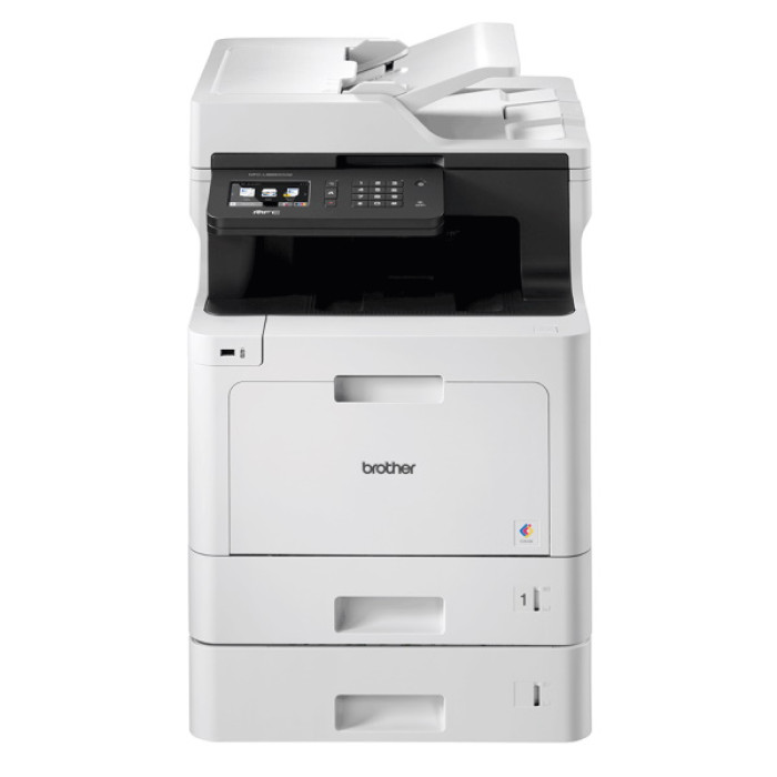 MFC-L8690CDWLT Impresora multifunción láser color profesional de alta velocidad. WiFi y doble cara en todas sus funciones y doble bandeja de 250h. Impresora multifunción láser color profesional 4 en 1 (impresora, copiadora, escáner y fax). Todas las funciones a doble cara (duplex automático). Velocidad de impresión y copia de 31 ppm por una cara y 14 ppm por las dos caras, tanto en monocromo como en color. Digitalización a doble cara, hasta 56 ppm. Conexión por red cableada o WiFi. Muy fácil de usar con su amplia pantalla táctil de 9,3cm que permite acceder de forma rápida a todas sus funciones. Recomendada para grupos de trabajo. Memoria 512MB. 2 bandejas de 250 hojas y multipropósito de 50 hojas. Conectividad: puerto USB 2.0, Gigabit Ethernet 10/100/1000Base-T, WiFi inalámbrica IEEE 802.11b/g/n. Resolución de impresión y de escaneado: 2400x600ppp Escaner plano y escaner por alimentador CIS doble, DADF de 35h. Escanea a USB, email, OCR, carpeta de red, SharePoint, etc. Consumibles de alta capacidad: TN423BK, TN423C, TN423M y TN423Y.