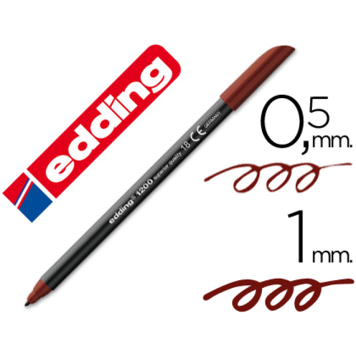 Rotulador edding punta fibra 1200 marron oscuro n. 18 -punta redonda 0.5 mm. Rotulador para escribir, dibujar, hacer bocetos, diseños, gráficos, etc. Tinta de alta calidad a base de agua. Punta redonda super resistente. Trazo 1 mm.