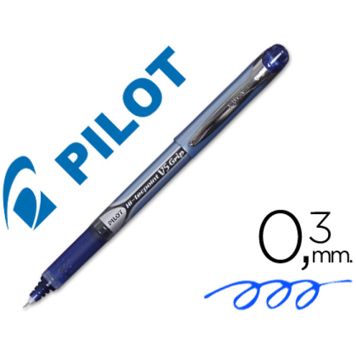 Rotulador punta aguja PILOT V-5 grip 0,5 mm azul punta 0,3mm. Roller ball pen.