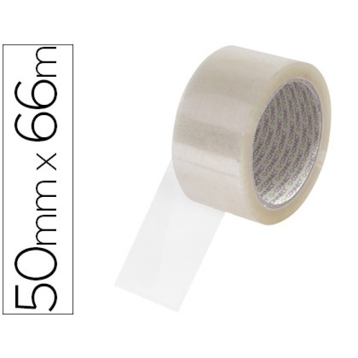 Cinta adhesiva q-connect polipropileno transparente 66 mt x 50 mm -para embalaje -bajo ruido. Cinta especial para embalaje. Alta adherencia. Más resistente, menos ruidosa. Medidas: 66 m x 50 mm. 50 micras.