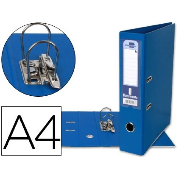 Archivador de palanca liderpapel a4 documenta forrado pvc con rado lomo 75mm azul compresor metalico. Archivador de cartón entrecolado de 1,9 mm. De espesor. Forrado p.V.C. Con mecanismo de palanca y compresor metálico. Cantoneras largas. Porta tarjetero en el lomo. Con rado® y ollao. Guarda impresa a color.