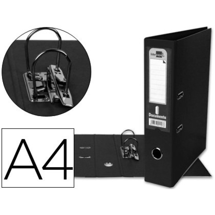 Archivador de palanca liderpapel a4 documenta forrado pvc con rado lomo 75mm negro compresor metalico. Archivador de cartón entrecolado de 1,9 mm. De espesor. Forrado p.V.C. Con mecanismo de palanca y compresor metálico. Cantoneras largas. Porta tarjetero en el lomo. Con rado® y ollao. Guarda impresa a color.
