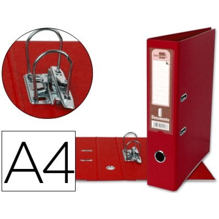 Archivador de palanca liderpapel a4 documenta forrado pvc con rado lomo 75mm rojo compresor metalico. Archivador de cartón entrecolado de 1,9 mm. De espesor. Forrado p.V.C. Con mecanismo de palanca y compresor metálico. Cantoneras largas. Porta tarjetero en el lomo. Con rado® y ollao. Guarda impresa a color.