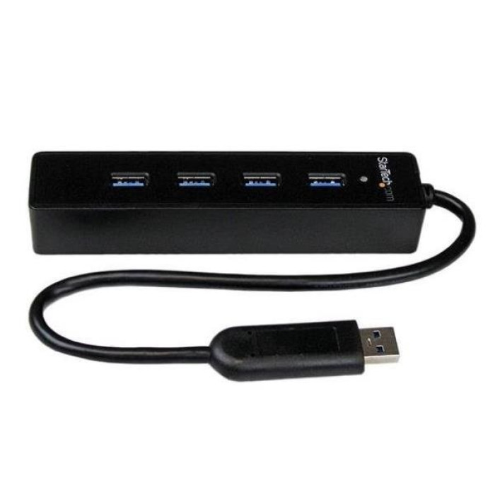 Este concentrador portátil de 4 puertos USB 3.0 con cable integrado convierte un puerto USB 3.0 en cuatro, a fin de conectar más dispositivos a su ordenador. Dimensiones: 137 x 30 x 22mm Peso: 82gr El concentrador tiene un cable integrado de 25cm que es más largo que el de la mayoría de los concentradores convencionales. El cable más largo resulta más flexible, ya que permite colocar el concentrador y sus dispositivos en la ubicación precisa en que se requiera, lo cual garantiza que el concentrador se puede conectar a su ordenador portátil o tablet indistintamente de dónde se encuentre el puerto USB 3.0 del ordenador. El concentrador USB 3.0 es compatible a nivel nativo con casi todos los sistemas operativos, lo cual facilita su configuración, ya que no requiere la instalación de controladores. Y como es retrocompatible, es posible conectar dispositivos USB tanto nuevos, como de generación anterior (por ejemplo, periféricos USB 2.0). El modelo ST4300PBU3 está avalado por la garantía de 2 años de StarTech.com y con soporte técnico gratuito de por vida.
