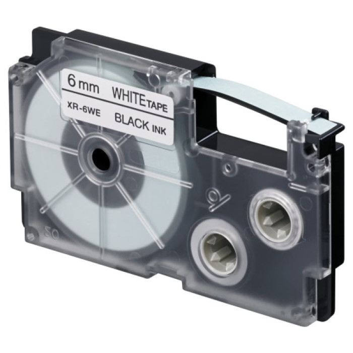 Cinta CASIO KL120 KL130 KL200 KL300 6mm x 8mts negro sobre blanco (XR-6WE)